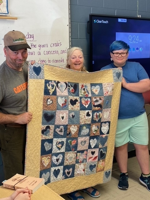 “My nana taught me to sew. Can you take a picture of this and send it to me, so I can show her?” This was such a proud moment for a student, who wanted to celebrate the symbolic creation. The grand slam moment was the presentation of the quilt to Nick and Keaton Chapman on 6/1 in room 116 at Telstar Middle School. Donna's artistic expression coined “Mending the Heart '' titled by the 7th graders themselves, was breathtaking. Rose from the Bethel Citizen was here to capture the event. This involvement elevated the significance of the creation for the students because of the value that was placed on it by others.