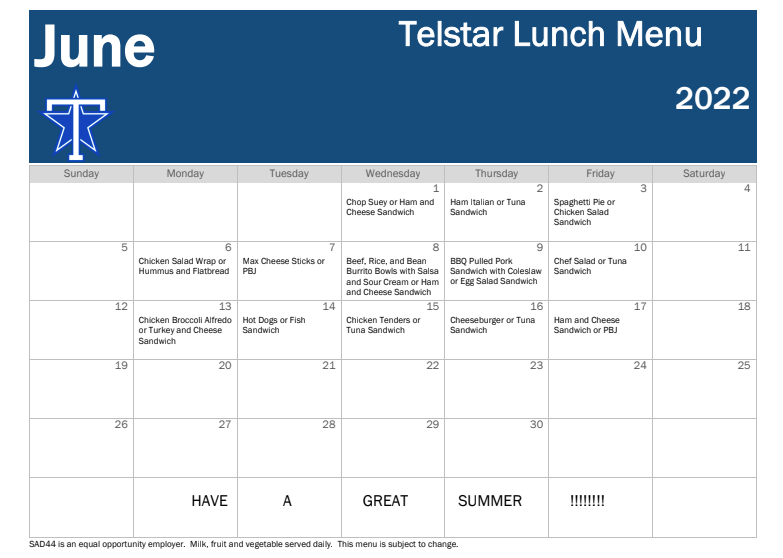 June Lunch Menu