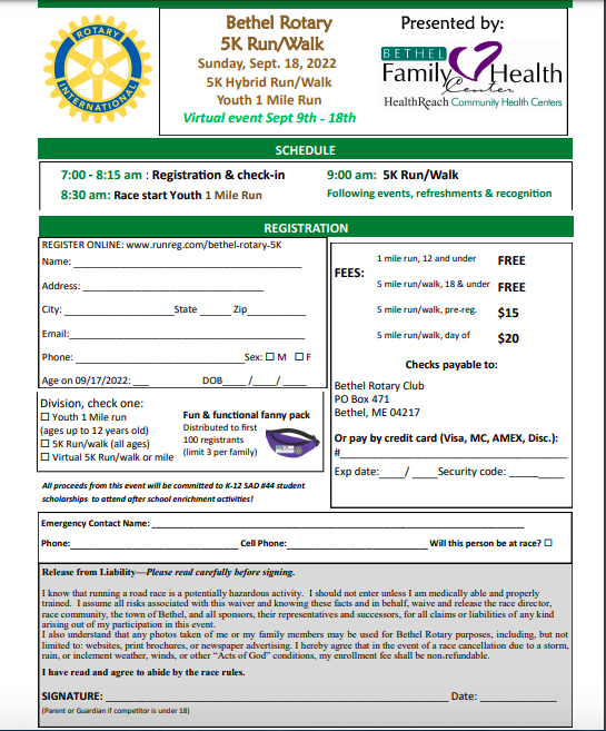 Thanks to our generous sponsors (the Title Sponsor is Bethel Family Health Center), we expect to raise significant funds to reinvest into scholarships for after school and enrichment activities developed for Bethel area youth..