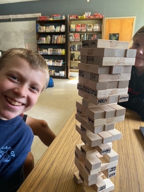Later on that day in Mrs. Lilly's room they took Jenga to another level and added some vocab and parts of speech practice in at the same time. Great community service and active learning taking place, check out those smiles!